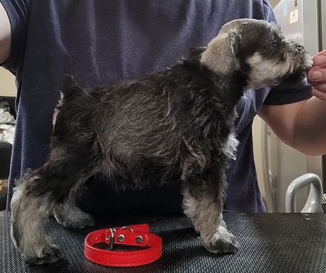 A long awaited black and silver boy to join the lineup! Orion is a very sweet guy that loves attention. Still a lot of puppy energy but easily managed. He's a bit more of a "talker" than I like but most people find it extremely endearing. I had hoped to show him but I'm waiting to see how big he gets. While some people still show and manage to finish over-sized dogs, I have decided that I won't do that. His parents and ancestors are within size and I expect most of his puppies will be too. Health and temperament are most important to me and he's got that covered!